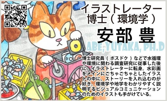 博士研究員(ポスドク)として水循環や環境に関わる調査研究に従事した後に、博士(環境学)イラストレーターに転身。知識と研究経験を活かして環境学や地学をわかりやすく説明するためのイラスト(書籍カバーや公共資料など)を作成しています。環境保全やリサイクル事業に関するイラストを手掛ける際は、その事業が環境を良くしていることと、継続的に行うと本気で考えているかどうかをお聞きし、共感できる事業にのみご協力しております。