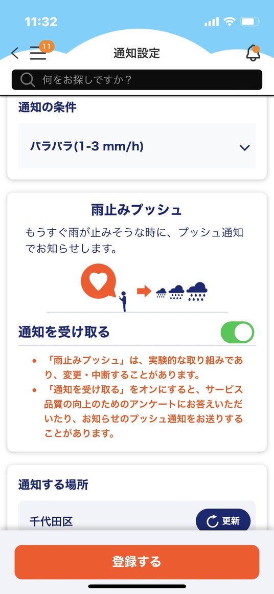 ※「雨止みプッシュ」は、実験的な取り組みであり、変更・中断することがあります。