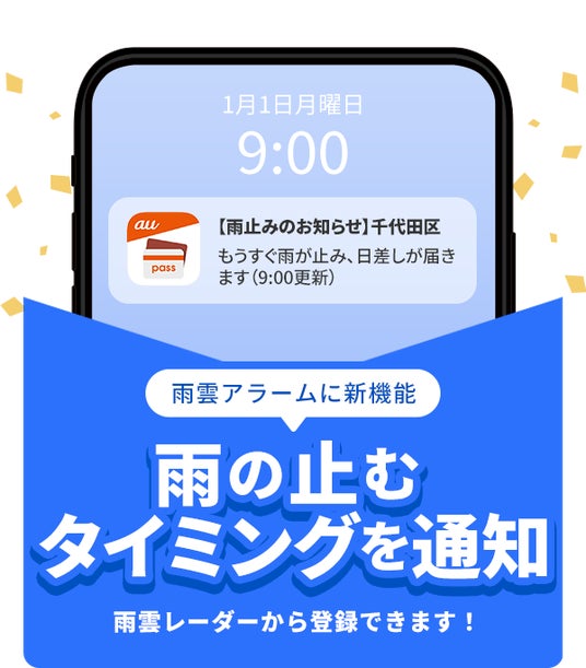 【auスマートパスプレミアム】×【ウェザーニュース】ゲリラ豪雨にも便利!雨が止むタイミングをお知らせ 新機能「雨止みプッシュ」をリリース