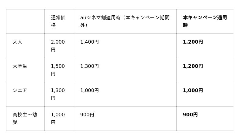 ・本割引対象外:一部の特別上映、プレミアペアシートなどの特別料金が設定されているシート。
