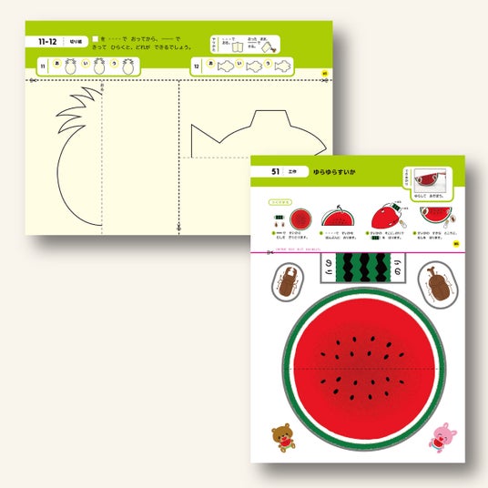 「図形」「切り紙・工作」「季節」の3ジャンルの問題で、小学校入学後もずっと役に立つ力がバランスよく身につきます。