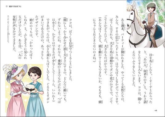 巻頭の「人物ガイド」では、登場人物の紹介や、ココ・シャネルが活躍した場所を紹介しているほか、子ども時代から、活躍しはじめるまでの流れがひと目でわかります。お話を読む前にイメージがわき、読書のスタートの手助けをします。