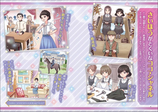 女性のパンツスタイルや、おしゃれで動きやすいドレス、魅力的な香水など、さまざまな流行を生みだしたといわれる彼女の人生を、物語でわかりやすく紹介しています。