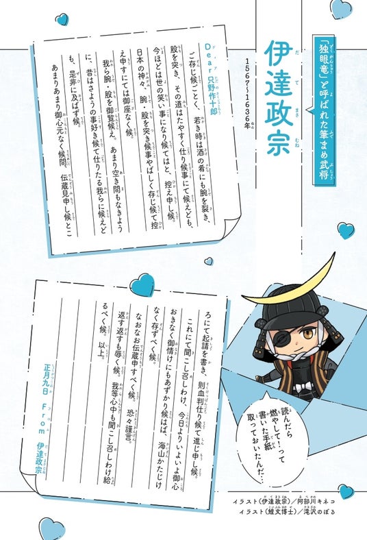 8月29日(木)から、Gakkenのまんがポータルサイト「ガッコミ」で『偉人たちの恋文物語』の連載が開始。初回は独眼竜と呼ばれた戦国武将の「伊達政宗」。