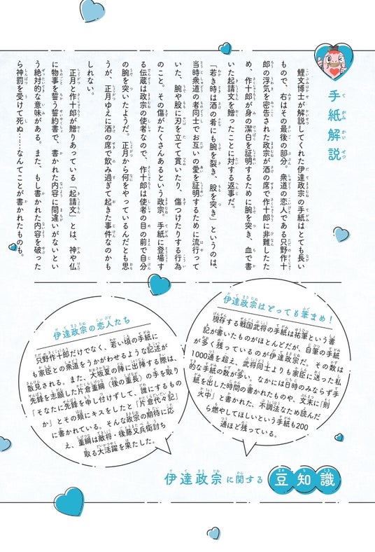 ▲記事ページでは、恋文紹介と解説、さらに漫画では紹介しきれなかった豆知識を掲載