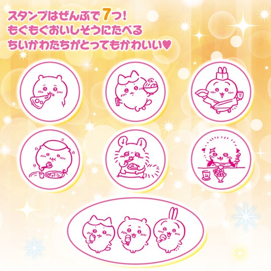 ちいかわたちのスタンプは全部で7種類。おえかきひめでしか手に入らない、オリジナルのスタンプです。