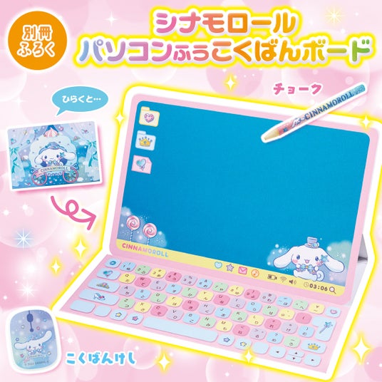 目がキラキラのシナモロールがかわいい、ノートパソコンそっくりのこくばんボード!