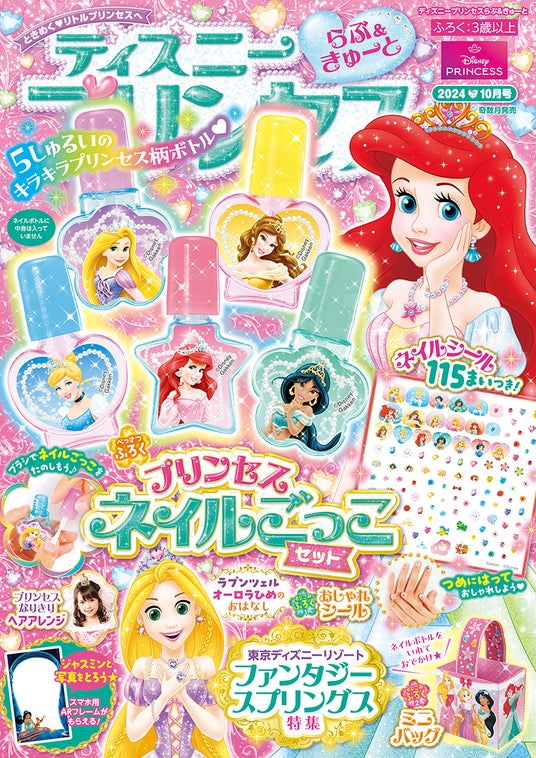付録はおしゃれを楽しめる「プリンセスネイルごっこセット」★『ディズニープリンセス らぶ&きゅーと 10月号』発売! ブラシやネイルシールでつめをかわいくしよう(ハート)