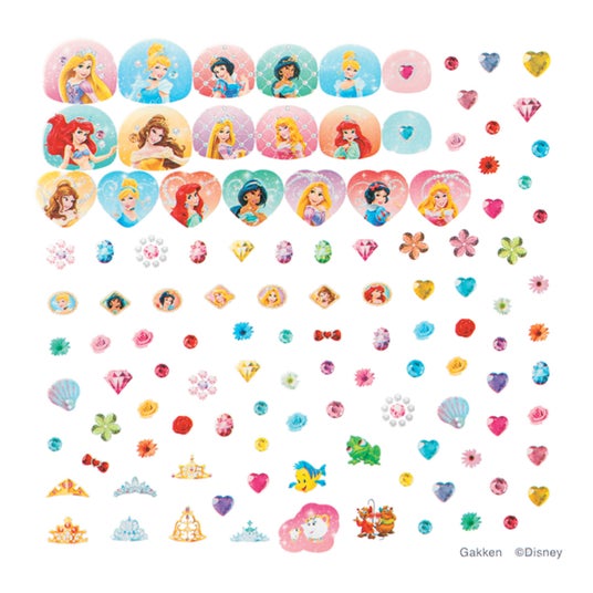ネイルシールはなんと合計115枚! プリンセスや宝石、アクセサリーなどさまざまな種類のシールが盛りだくさん♪ つめにはってかわいくしてね(ハート)
