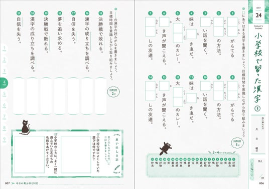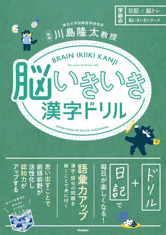 『日記×漢字ドリル』を通して、学生時代に学んだ知識を引き出しながら、熟語や慣用句、古典などにまつわる漢字の問題を解くドリルと、幼いころや、つい最近の記憶を思い出しながら日記を書くことで、多角的に記憶力を刺激。認知機能がどんどんアップしていきます。