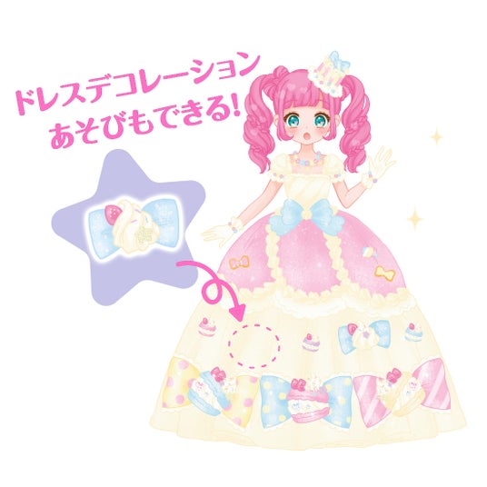 クリームやマカロンなど、好きなスイーツモチーフを使って、オリジナルのスイーツドレスをデザインできるページもあります。