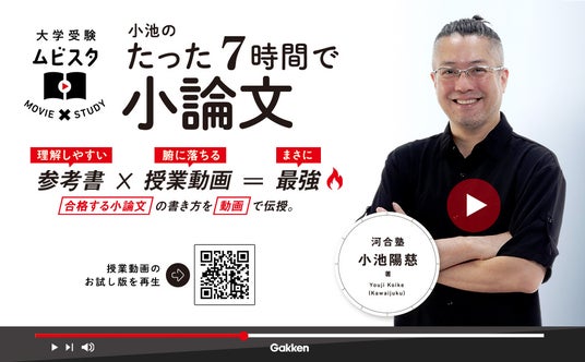 株式会社 学研ホールディングス(東京・品川/代表取締役社長:宮原博昭)のグループ会社、株式会社Gakken(東京・品川/代表取締役社長:南條達也)は、2024年10月17日(木)に『大学受験ムビスタ 小池のたった7時間で小論文』を発売いたしました。