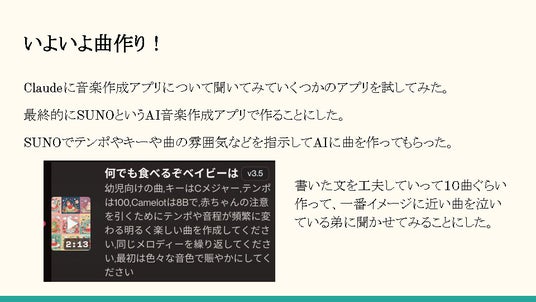 ■2024年小学生の部最優秀賞「赤ちゃん(弟)が泣きやむAI曲作り」
