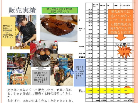 中学生の部最優秀賞は、自身の進路と家族の仕事から見つけた「商売は科学なのか」という疑問について実証実験を重ねた研究です。実際にスーパーの一角を使うという発想力と行動力を発揮して、どんな商品が、どうしたら売れるのか、データを取りながら調べています。日常生活のさまざまな活動を科学的に捉える重要性を示す作品です。