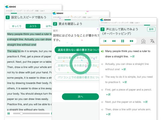 今回のサービス拡充では、各種英語試験でも基本的な英語スキルとして求められるリーディング、リスニングスキルのユニットを大幅に追加しています。
