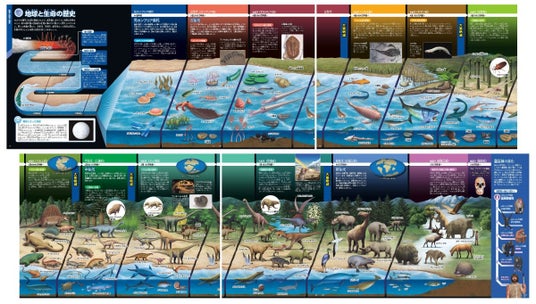 ▲地球と生命の歴史は、10ページを繋げたパノラマ年表で大特集!