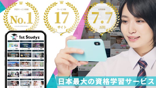 【17サービス7.7万問】が【すべて無料!】スキマ時間に学べる国内最大の資格学習プラットフォーム「過去問 1st Studyz」利用者累計80万人突破を突破!