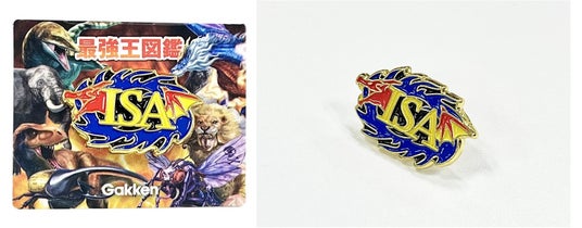 コンプリートBOXは、限定の特典つき! ここでしか手に入らない「国際[最強王図鑑]協会認定ピンバッジ」はぜひ「最強王図鑑」コレクションに加えたい一品だ。