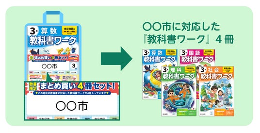 ▲「○〇市」と書かれたセットを購入すると、○〇市で使っている教科書に対応した4冊が買える。