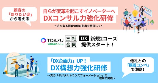 株式会社 学研ホールディングス(東京・品川/代表取締役社長:宮原博昭)のグループ会社、株式会社TOASU(東京・品川/代表取締役社長:宮田 晃)は、2025年1月から、三社合同研修の新コース「DX構想力強化研修」「DXコンサル力強化研修」の提供をスタートいたしました。