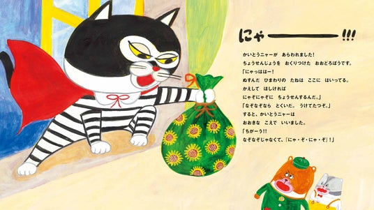 「にゃっははー!」「はむむむむ…」など、キャラクターたちの発するセリフはつい口に出してみたくなる可愛さ! 読み聞かせでも大盛り上がりすること間違いなしの新作絵本です。