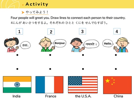 世界にはさまざまな国や文化があることを意識できるようなアクティビティやイラストを追加し、多様性への気づきと興味のきっかけとなるコンテンツを拡充しました。英語を使いながら、世界の広がりに自然と目を向けられるような内容になっています。