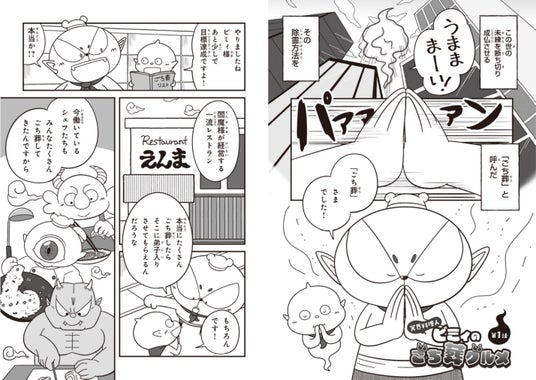 料理人コンビが幽霊を料理で‟ごち葬”します。ガッコミで漫画『冥界料理人 ビミィのごち葬グルメ』が連載開始。子どもにも安心な火と包丁を使わない創作レシピ付き。
