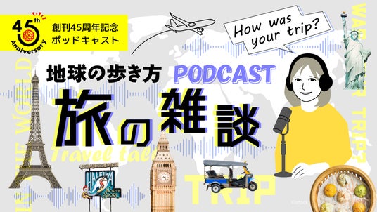 「地球の歩き方」創刊45周年を記念し、編集長がホストをつとめ社員や制作スタッフと旅の話を繰り広げるポッドキャスト『地球の歩き方 旅の雑談』が配信開始! 書籍には載っていない特別エピソードもお楽しみに。