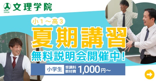 「成績が上がった!」「安定した!」という声が多数届いています。文理学院の指導は、学習習慣が自然と身に付き、自主的に勉強する力が育ちます。テストの点数や順位でも手応えを実感できます。欠席時には振替授業と個別対応でしっかりフォローするので、部活や習い事との両立も可能です。プロ教師による質の高い授業を、無理のない価格でご提供いたします。生徒の性格や状況に応じた、きめ細やかな支援が好評です。今こそ実力アップのチャンスです。短期間で効率的に学べる文理の夏期講習なら、基礎固め&応用力アップができます。充実したカリキュラムとプロ教師の指導で、学ぶ力を育てます。