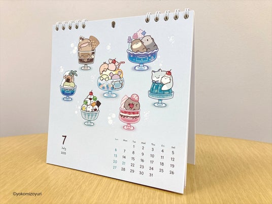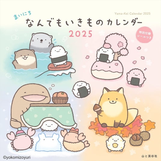 サンエックス在籍中に「すみっコぐらし」を生み出し、いまはイラストレーターとして活躍しているよこみぞゆりによる、ゆるくてかわいいいきものたちが繰り広げる月めくりのカレンダーを制作しました。動物・植物・食べ物・物……あらゆるものがなんでもいきものの自由な世界をお届けします。お家の机や職場のデスクの上で、一年間いきものたちの楽しい姿をお楽しみください。巻末にはシールの付録が付いています。