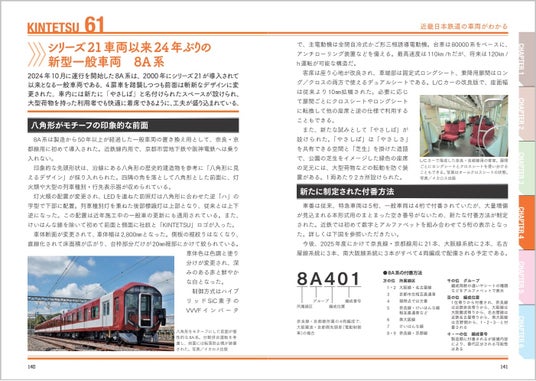 その第1弾となる『近畿日本鉄道のすべて』では、2024年に登場した近畿日本鉄道(近鉄)の新型通勤電車8A系を特集。イカロス出版の強みである新車取材力を活かし、最新の車両情報を詳しく紹介しています。さらに、本書全体にわたって最新のデータや内容をアップデートし、より充実した一冊となっています。