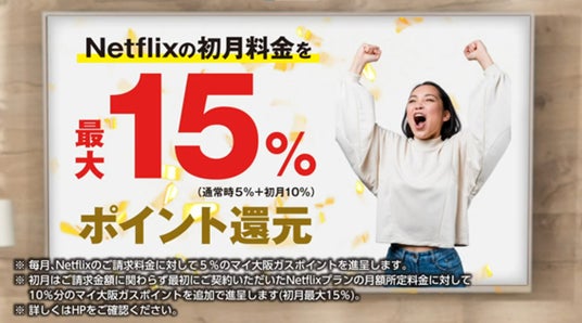 大阪ガス、Netflixとおトクな新サービス開始!Netflixを大阪ガスから申込むとNetflix月額料金の最大15%ポイント進呈。