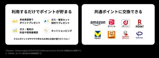 大阪ガスの会員サイト「マイ大阪ガス」では、ガスや電気の料金・使用量を確認できるだけでなく、料金チェックやサイト利用で毎月ポイントが貯まります。貯まったポイントは共通ポイント等への交換や豪華賞品が当たるプレゼントへの応募等にお使いいただけます。※8