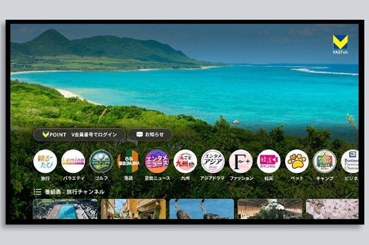 「V FASTチャンネル」に最適化されたハードウェアとなっており、料理、健康、旅行、時代劇、韓流など、お好みのジャンルを24時間365日お楽しみいただけます。従来 のテレビ放送のように「つけっぱなし」で視聴でき、気になった番組を気軽に「ながら見」する「#ゆる見」スタイルに最適な操作感を実現しています。