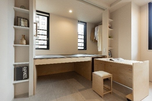 多目的に利用可能なベッド、シャワーブース等の設置等により、狭い面積でも広く感じられる住戸を備えた「コンパクトで快適に過ごせる部屋」