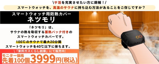 東邦ガス株式会社(所在地:愛知県名古屋市、代表取締役社長:増田 信之、以下 東邦ガス)は、東邦ガス技術研究所の蓄熱材開発ノウハウを結集し、サウナ室内にスマートウォッチを持ち込めるスマートウォッチ用防熱カバー「ネツモリ」を開発しました。