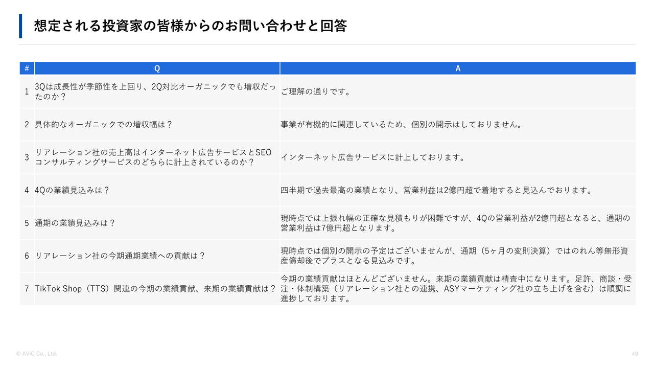 質疑応答:ライブコマース市場におけるAViC社の優位性について