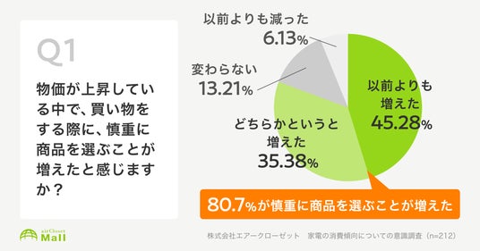 80.7%が買い物時により慎重に商品を選ぶようになり、値段よりも実際の使用感や使い勝手を重視
