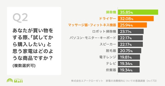 家電をはじめとするライフスタイル商品を、自宅で試してから購入できるメーカー公認月額制レンタルモール『airCloset Mall(エアクロモール)』を運営する株式会社エアークローゼット(本社:東京都港区、代表取締役社長 兼 CEO:天沼 聰)は、継続的な物価高の影響を受ける中、家電の消費傾向についての意識調査を実施いたしました。