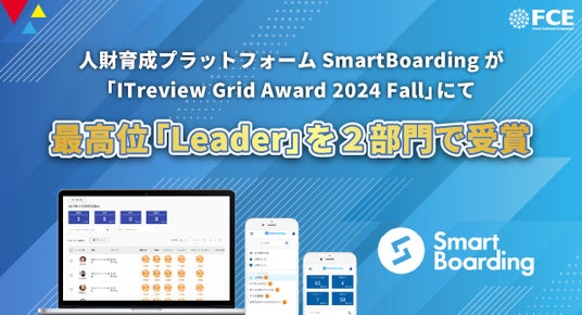 株式会社FCE(本社:東京都新宿区、代表取締役:石川淳悦、東証9564)が提供する「Smart Boarding 人材育成」は、アイティクラウド株式会社が主催するアワード「ITreview Grid Award 2024 Fall」の「 LMS/eラーニングシステム」「オンライン研修」の2部門において、満足度・認知度ともに優れた製品であると評価され、最高位である「Leader」を受賞しました。「オンライン研修」部門における受賞は、今回が初めてとなります。