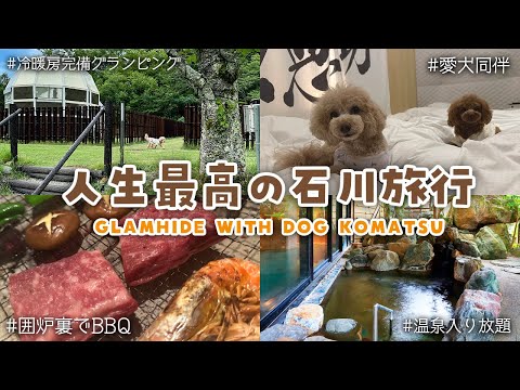 小型犬から大型犬まで家族の一員であるワンちゃんと、笑顔で楽しい時間を過ごしていただけるグランピング施設。ノーリードで過ごすプライベート空間、ドッグランなどワンちゃんのために用意された設備、粟津温泉郷の美肌の湯と地場産の旬の食材を使ったお食事など体験をお楽しみいただけます。