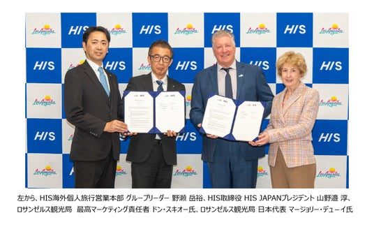 株式会社エイチ・アイ・エス(本社:東京都港区 HIS)とロサンゼルス観光局(所在地:アメリカ合衆国カリフォルニア州ロサンゼルス)は、ロサンゼルスへの観光客誘致拡大に関する業務提携を本日締結いたしました。