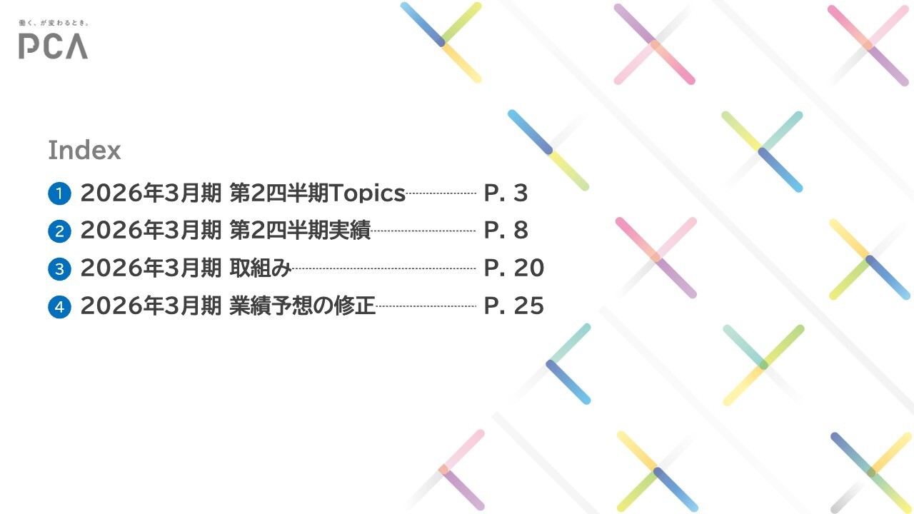 佐藤文昭氏:みなさま、こんにちは。ピー・シー・エー株式会社代表取締役社長の佐藤です。これから、2026年3月期ピー・シー・エー第2四半期決算説明会を始めます。