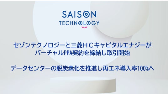 セゾンテクノロジーと三菱HCキャピタルエナジーがバーチャルPPA契約を締結し取引開始 データセンターの脱炭素化を推進し再エネ導入率100%へ