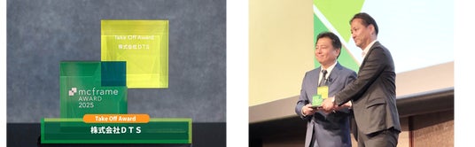 株式会社DTS(東京都中央区、代表取締役社長 北村 友朗)は、ビジネスエンジニアリング株式会社(東京都千代田区、代表取締役社長:羽田 雅一)が主催する「mcframe Award 2025」(2025年5月22日開催)で、「Take Off Award」を受賞しました。