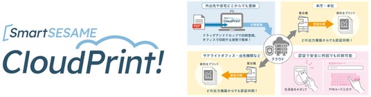 『SmartSESAME CloudPrint!』は、マルチメーカーに対応したクラウド印刷サービスです。すでに、オンプレミス版で提供中の認証印刷システム「SecurePrint!」の利便性と、認証スキャンシステム「MultiScan!」の機能はそのままに、クラウド版として提供します。