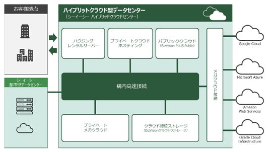 ハイブリッドクラウドセンターのほか、シーイーシーが提供するデータセンターとの拠点間接続により、ハイブリッド構成やマルチクラウド接続の利用、統合運用が可能です。