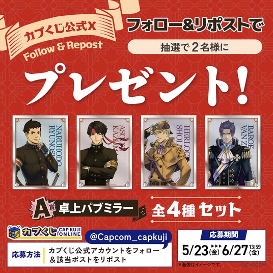 また、本コラボの開催を記念して、カプくじオンラインの公式X(旧Twitter)アカウント(@Capcom_capkuji)でキャンペーンを開催!