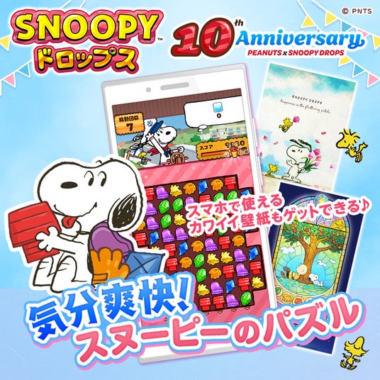 このスタンプは株式会社カプコンが配信するパズルアプリ『スヌーピードロップス』に登場する色々な衣装のスヌーピーのデザインを起用したコラボレーションスタンプです。