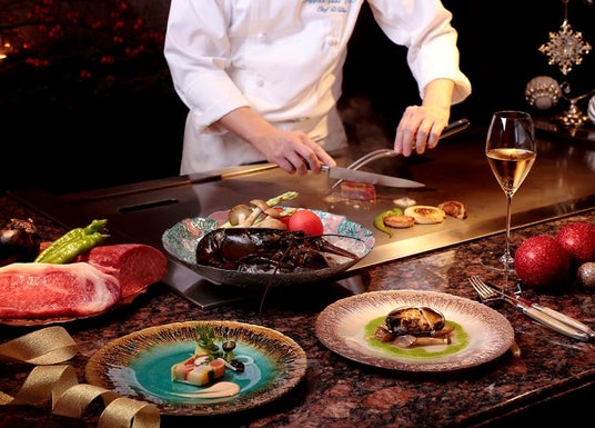 「鉄板焼 葵」では選び抜かれた黒毛和牛や活オマール海老などを目の前で焼き上げ、魅せるライブ感とともにシェフ達の華麗な手さばきから生まれる絶妙な美味を愉しめます。また、「中国料理 皇家龍鳳」では「北京ダックと翡翠海老蒸し餃子」や「牛フィレ肉と蟹爪の麻辣醤(マーラージャン)ソース」など豪華な素材を贅沢に使用し、華やかでクリスマスにふさわしい中国料理のディナーコースをご用意しました。「懐石フランス料理 グルマン橘」ではキャビア・フォワグラ・トリュフの世界三大珍味をコースの随所に散りばめ、クリスマス気分を盛り上げる煌びやかなメニューに仕立てました。洗練した技を目の前に臨むカウンター席で、大人のクリスマスディナーをお愉しみいただけます。